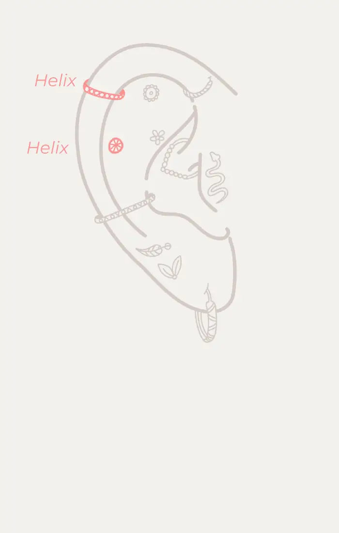 El piercing Helix es una de las perforaciones de oreja más populares del mundo. Su posición permite crear composiciones elegantes y modernas combinando diferentes estilos de joyería.