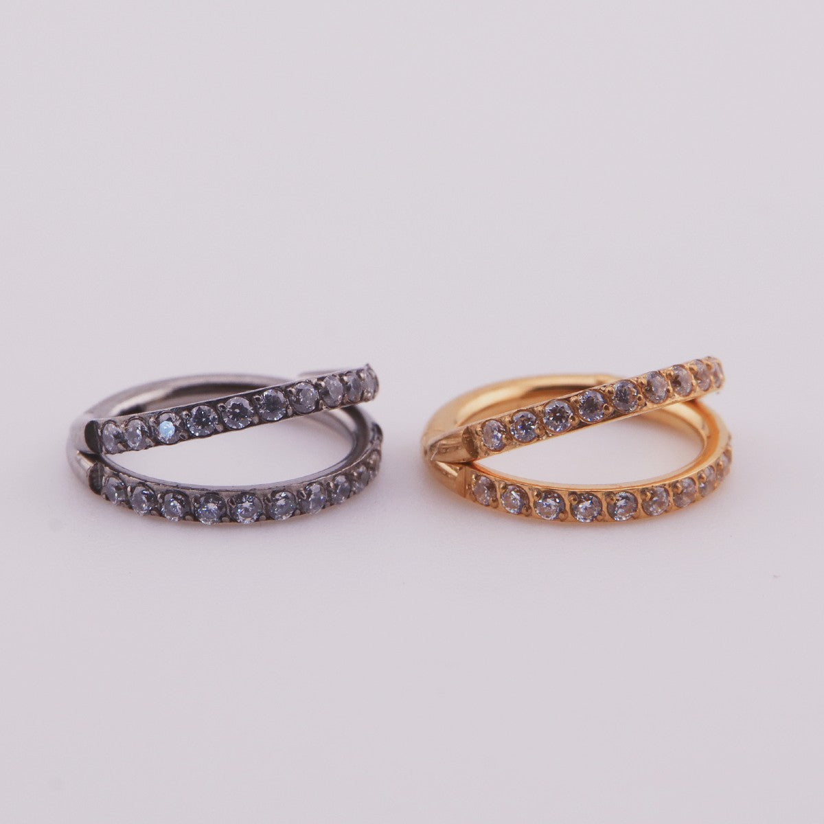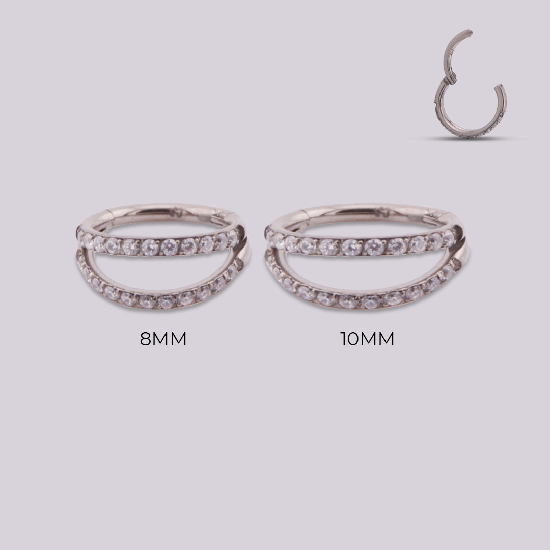 El Aro Clicker Doble Arco Ágata en Titanio – Dorado y Plateado destaca por su diseño sofisticado de doble arco con incrustaciones de zirconias, que aporta brillo equilibrado y una estética refinada. Fabricado en titanio grado implante, ofrece una experiencia ligera, cómoda y segura, mientras que su sistema clicker permite una colocación práctica y confiable para el uso diario.