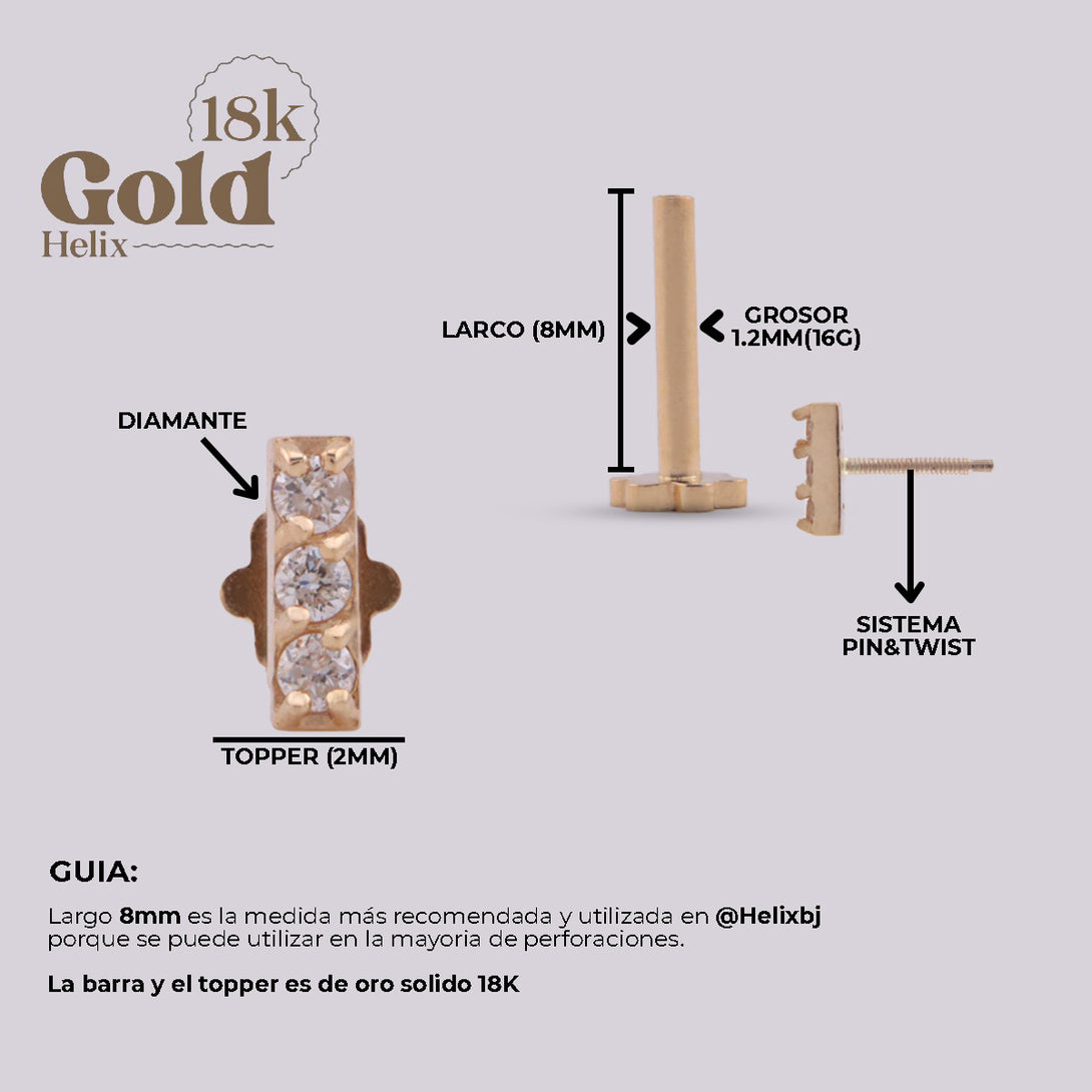 This piece is more than just jewelry; it's a wearable work of art. Crafted with 18k gold and fine VS/G quality diamond inlays, it stands out for its unique design and exceptional durability. Gold has been prized for its timeless beauty and enduring quality for centuries. Our 18k solid gold piercings are an expression of luxury and distinction, redefining the art of body modification.