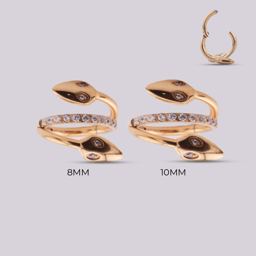 This jewel is characterized by having the shape of a snake that stands out at each of its tips, it is a design with character and a lot of style, without a doubt you will steal everyone's attention with this piece.