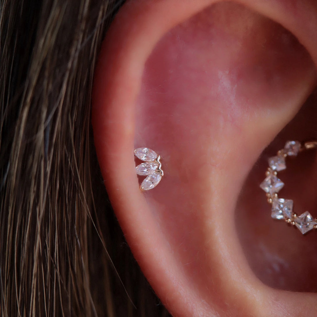 Our collection of gold piercings are made of solid 14K gold and grade cubic zirconia stone. 5A, which resembles the unsurpassed brilliance that precious stones emit; With our gold piercing you will have high quality and designer jewelry that you can use every day or for a special occasion