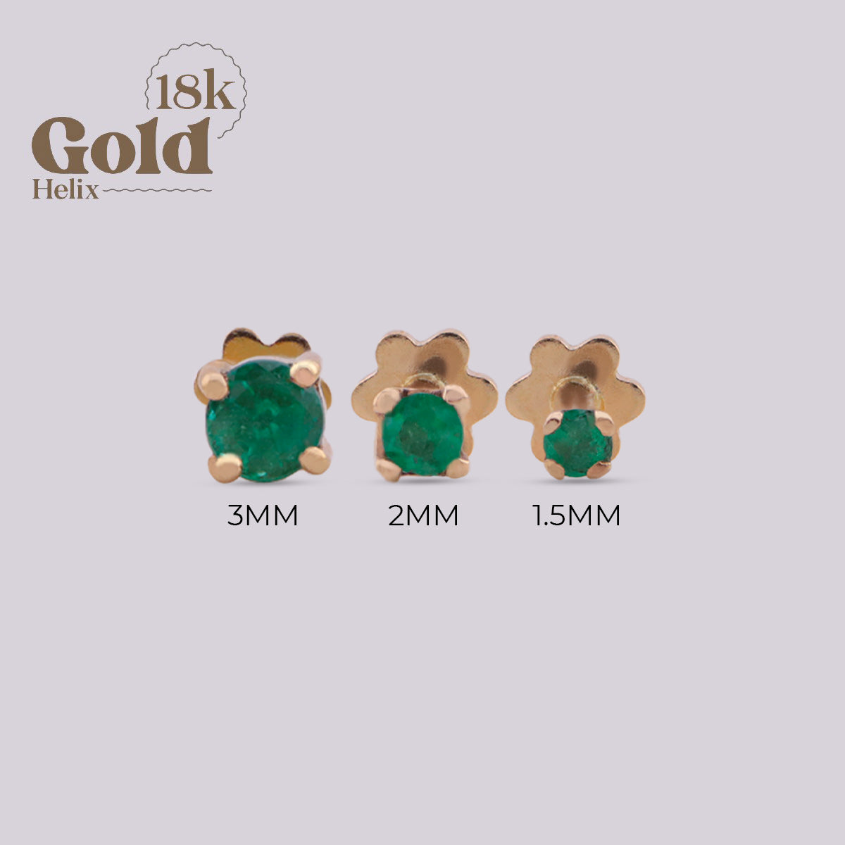 Labret con Esmeralda Colombiana 3 mm en Oro 18K