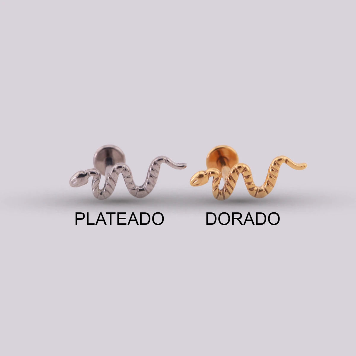 El Labret Sily en Titanio destaca por su diseño en forma de serpiente, una pieza creativa y sofisticada que aporta carácter y estilo a cualquier ear look. Su silueta fluida y elegante lo convierte en una joya protagonista, perfecta para quienes buscan un diseño diferente sin perder comodidad. Fabricado en titanio hipoalergénico, es ligero, seguro y apto para uso diario.