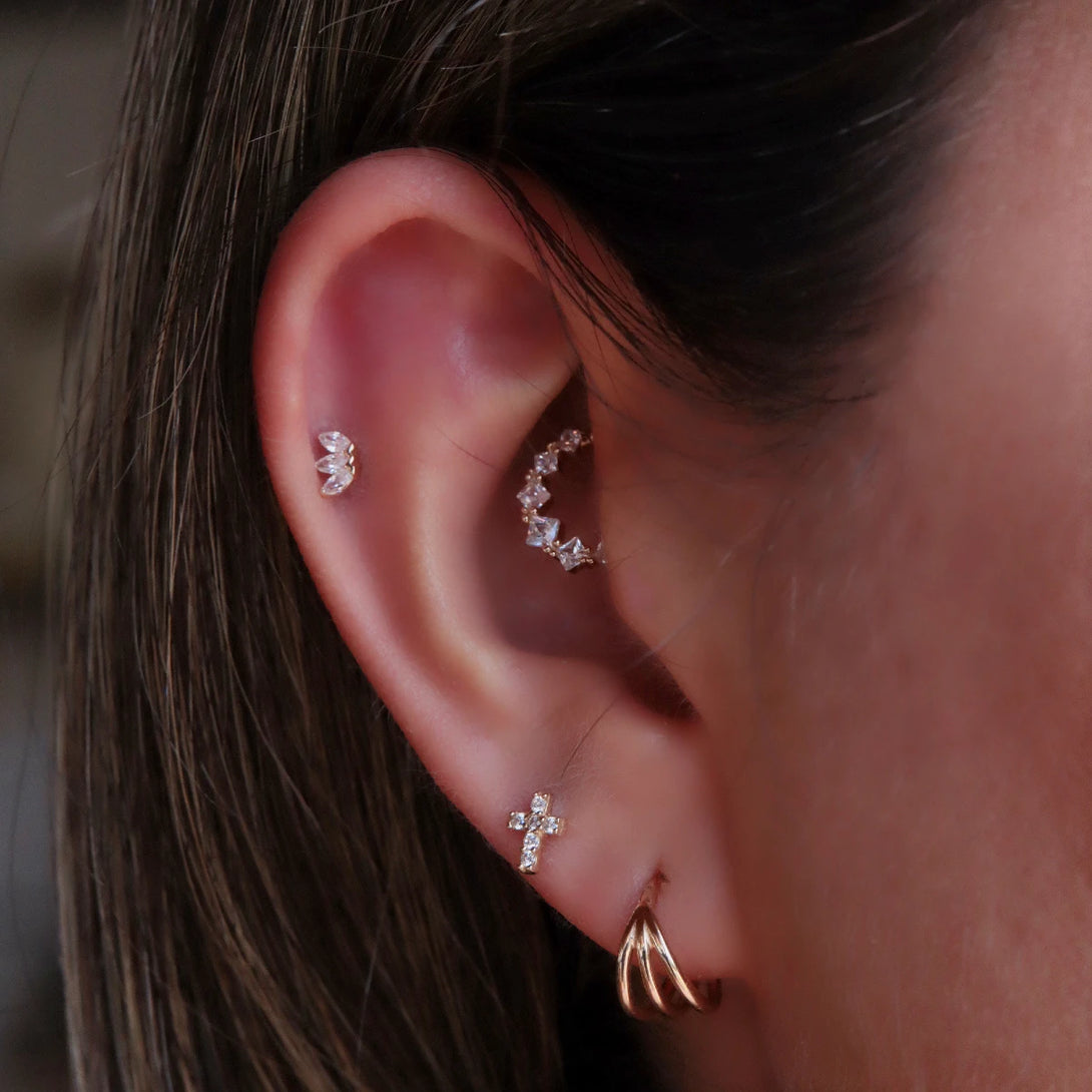 Versatility and Comfort:  This beautiful jewelry adapts to piercings in the Helix, Rook, Lobe, Upper Lobe area. Made with 14 karat gold, these jewelry not only stand out for their unique design, but for their long-lasting quality. Since time immemorial, gold has been praised for its timeless beauty and unparalleled durability in the world of jewelry. Solid 14K gold piercings are an expression of luxury and distinction that redefines the art of body modification.