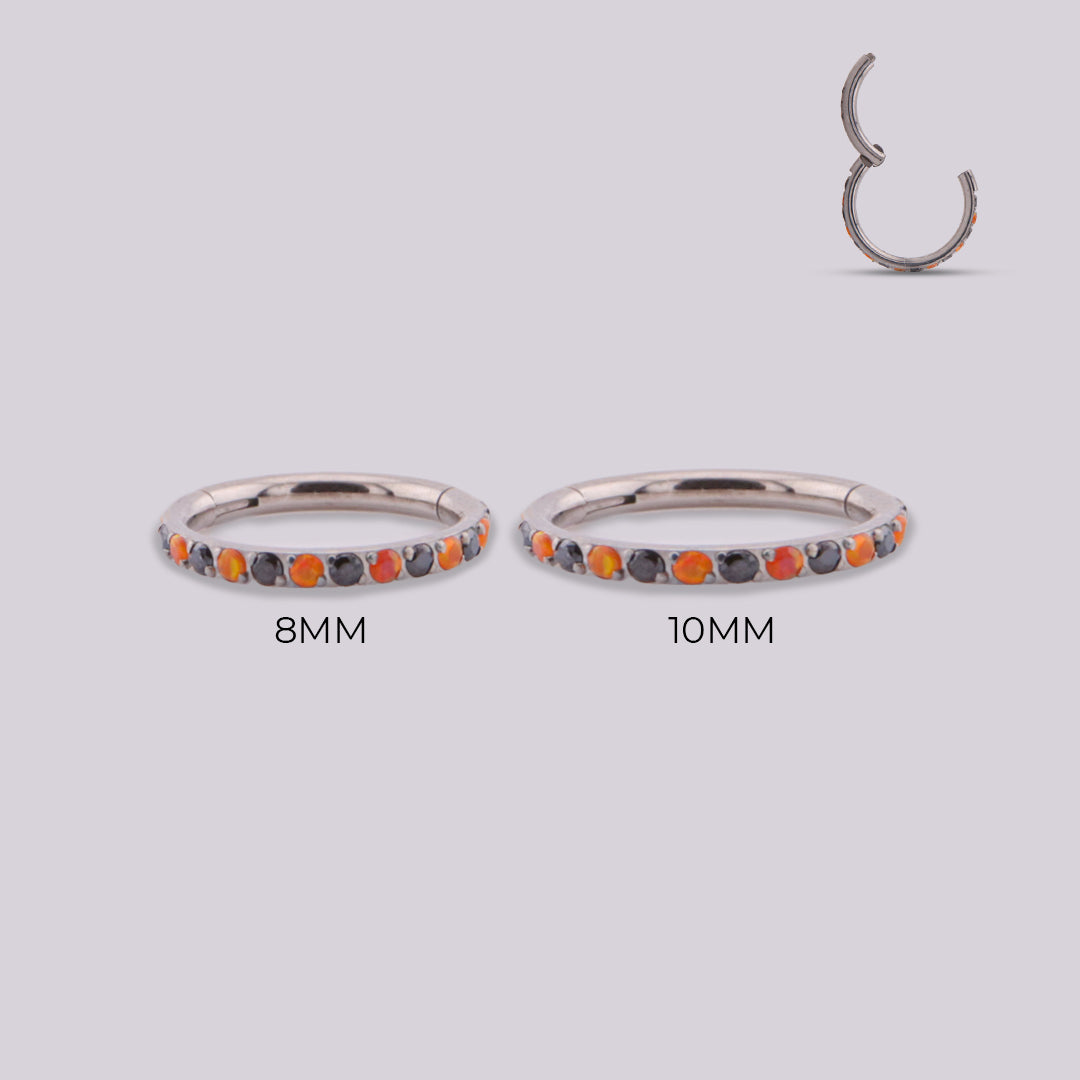 This jewel is a very original proposal because it combines black with orange, colors with character and strength, ideal for creating risky and unusual ear looks. It is made of titanium with opal plus zirconia inlays. You can use them on Helix, Conch, Lobulo and Upper Lobe