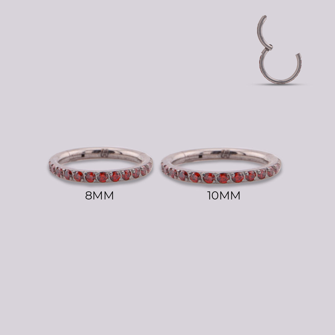 Red jewelry is synonymous with strength and confidence, ideal for recreating styles that will undoubtedly make you stand out. This is a light ring, made of titanium with zircon inlays.