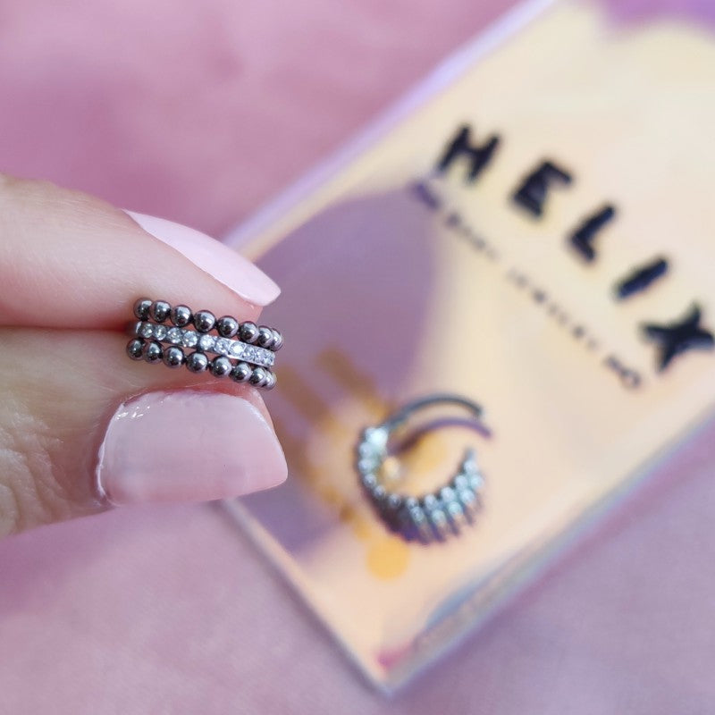 Double hoops continue to be a trend, because with a single piercing you can achieve great effects and your piercings will undoubtedly stand out beautifully. This is a light piece of jewelry, made of hypoallergenic titanium and we have it available in gold and silver, which are very versatile colors that allow you multiple combinations. They are specially designed for the Helix, Upper Lobe and Lobe Zone.